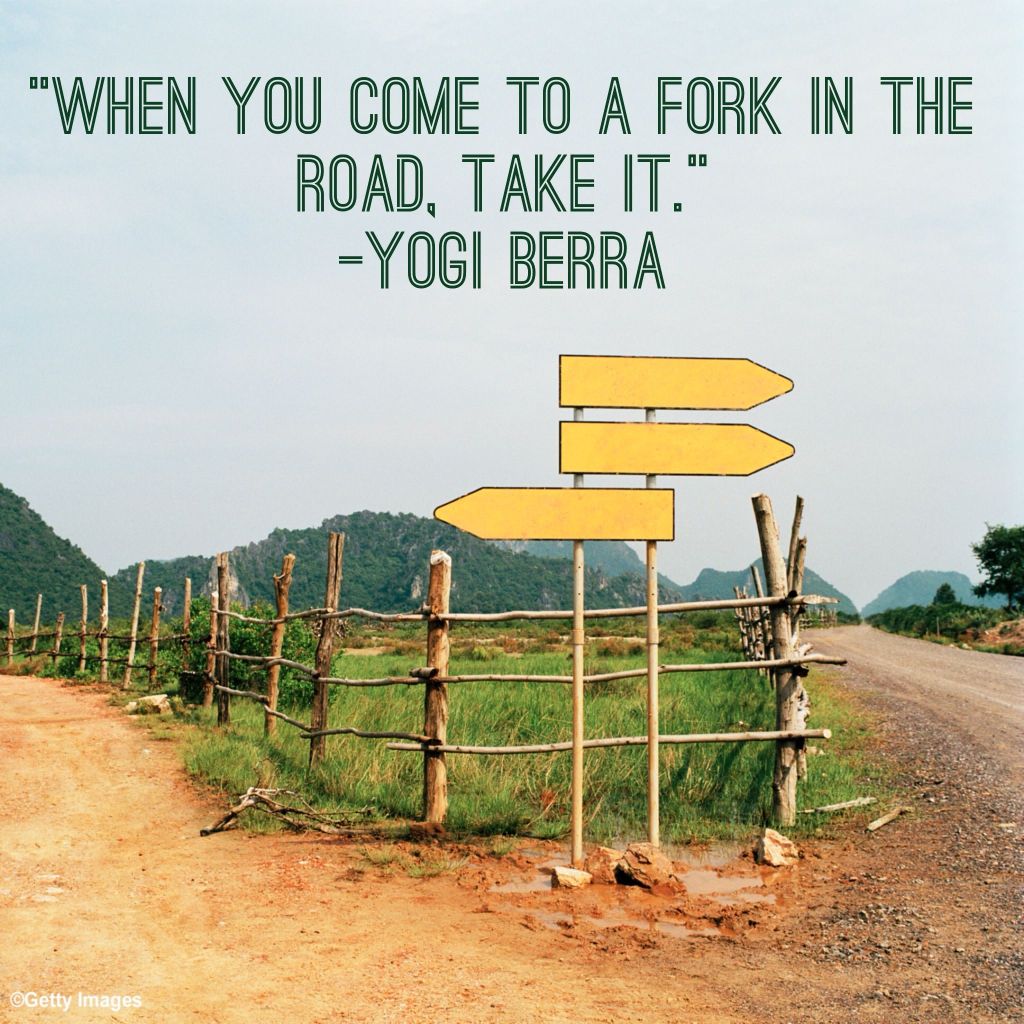 Yogi Berra once said, “Whenyoucometoafork in theroad, takeit.” I always found that to be comical and didn’t pay much mind to the message until recently. Take what? What does that mean? Which direction am I supposed to go? Am I supposed to go straight through the fork? There aren’t clear signs to show me the way!